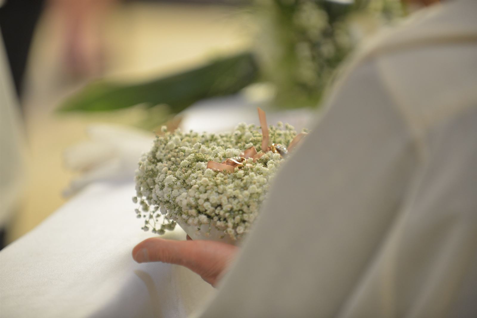 Cuscino floreale per Anelli Nuziali realizzato con gipsophila